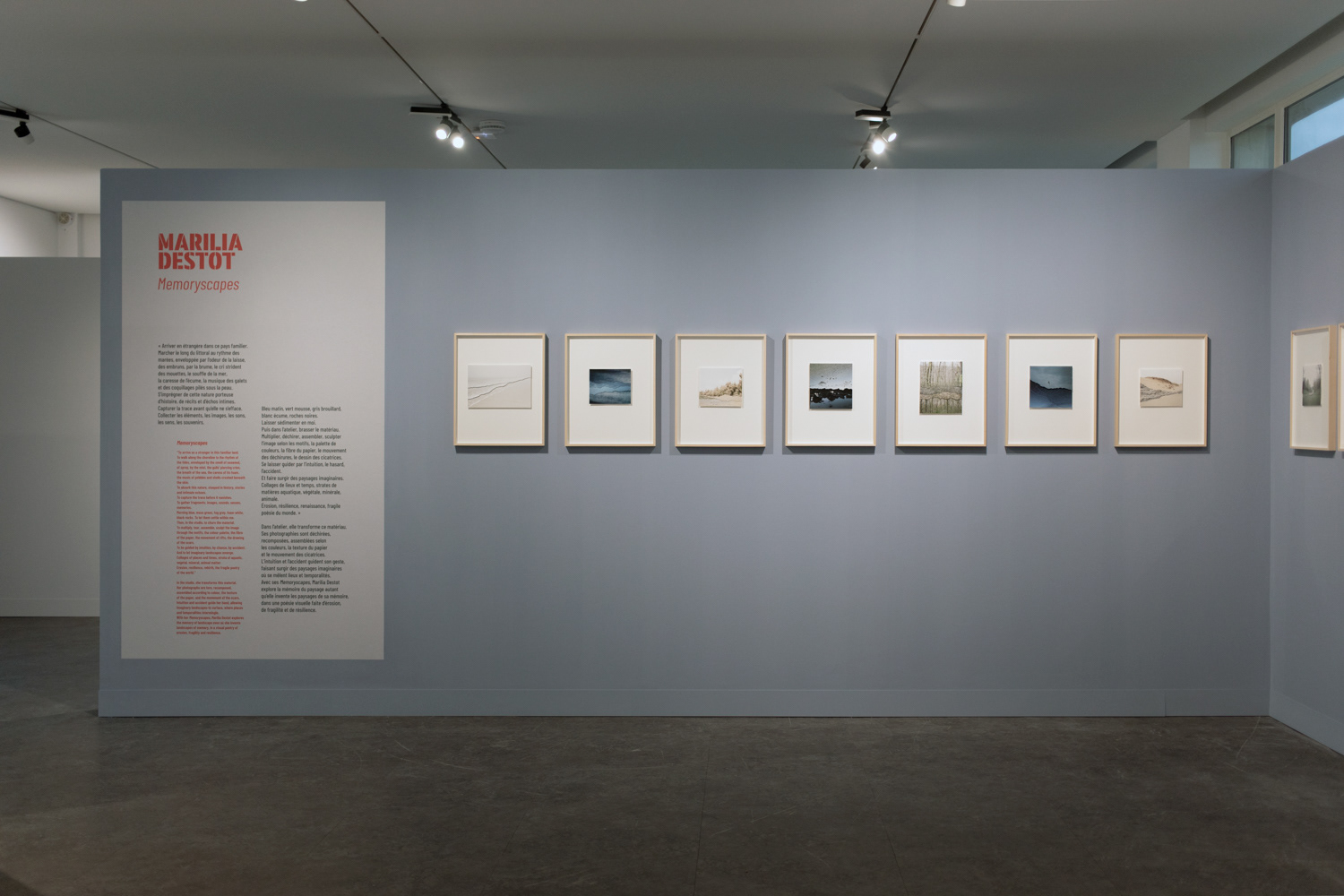 Lors de sa résidence, Marilia Destot plonge au cœur du littoral Normand, capturant ses atmosphères, couleurs et textures. En atelier, elle transforme cette matière naturelle : elle fragmente, superpose, déchire, assemble en strates organiques ses collages photographiques. Guidée par l’intuition et le hasard, elle crée un ensemble d’images poétiques, de paysages imaginaires qui interrogent et dessinent une mémoire du paysage autant que les paysages de sa mémoire.